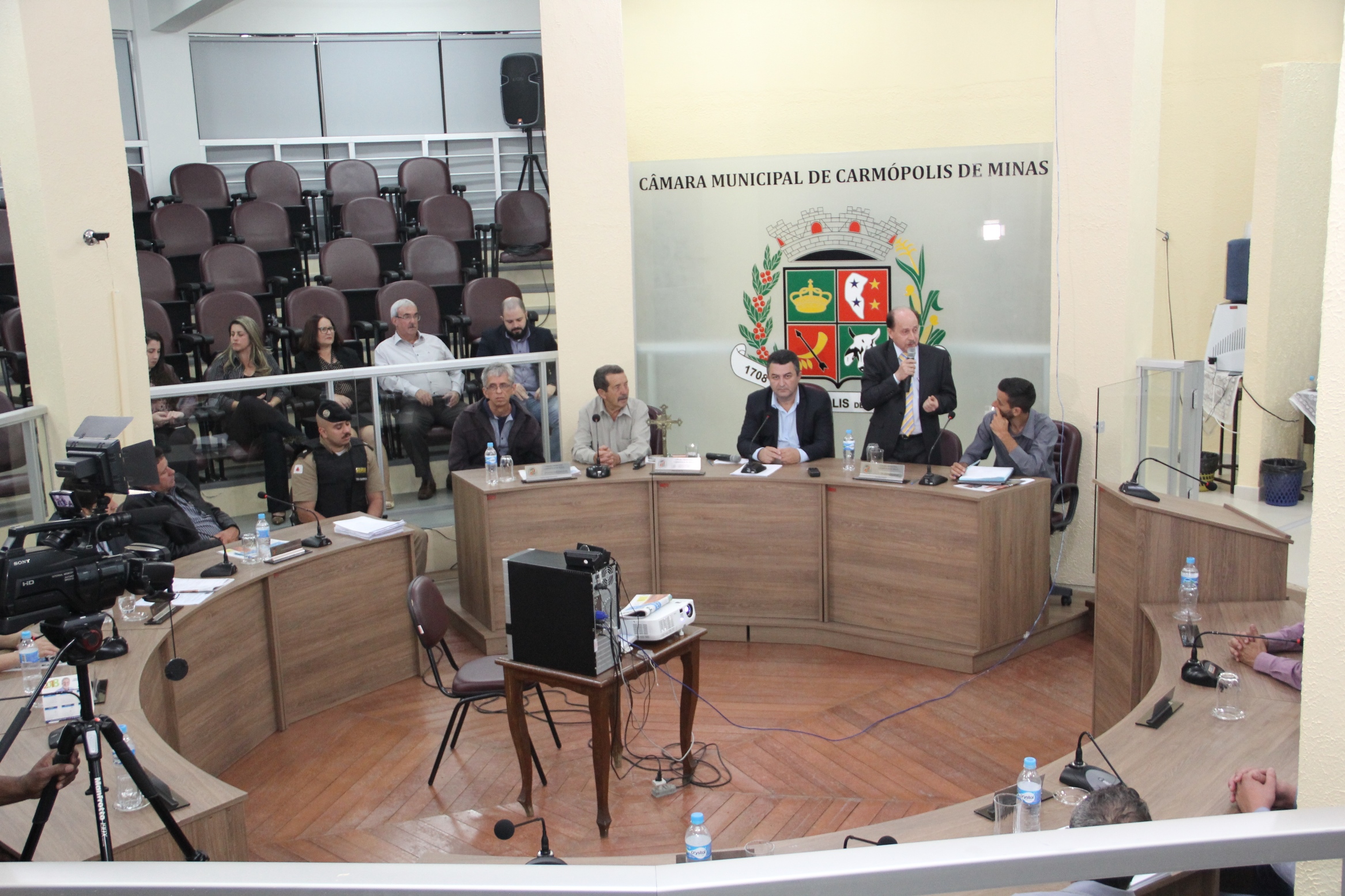 O prefeito Geraldo Antônio da Silva (PSD) teve ausência justificada por participação, naquela data, de encontros de trabalho em outras cidades. Também estiveram presentes todos os vereadores, secretários municipais, o procurador-geral do município Daniel Marçoni, o chefe de gabinete Gilberto Rabelo Silveira, a advogada Júnia Amaral, assessores da Prefeitura e servidores da Justiça.