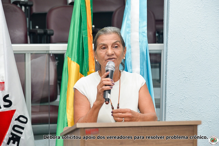 “Estou aqui hoje pedindo a vocês a gentileza de olhar pelo bairro, para que haja uma melhoria para todos os moradores”, reivindicou ela, também citando o problema no imóvel construído para ser a sede da Associação de Pais e Amigos dos Excepcionais (APAE) mas que, abandonado há cerca de vinte anos, se transformou em ponto de encontro e de usuários de drogas, aumentando a insegurança em toda a região.