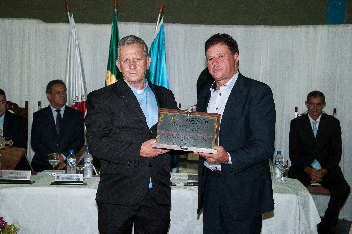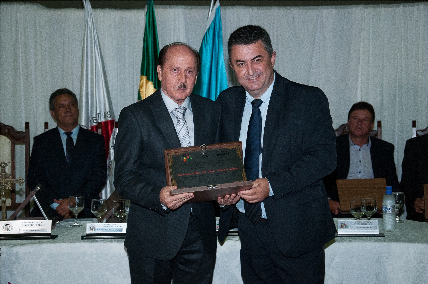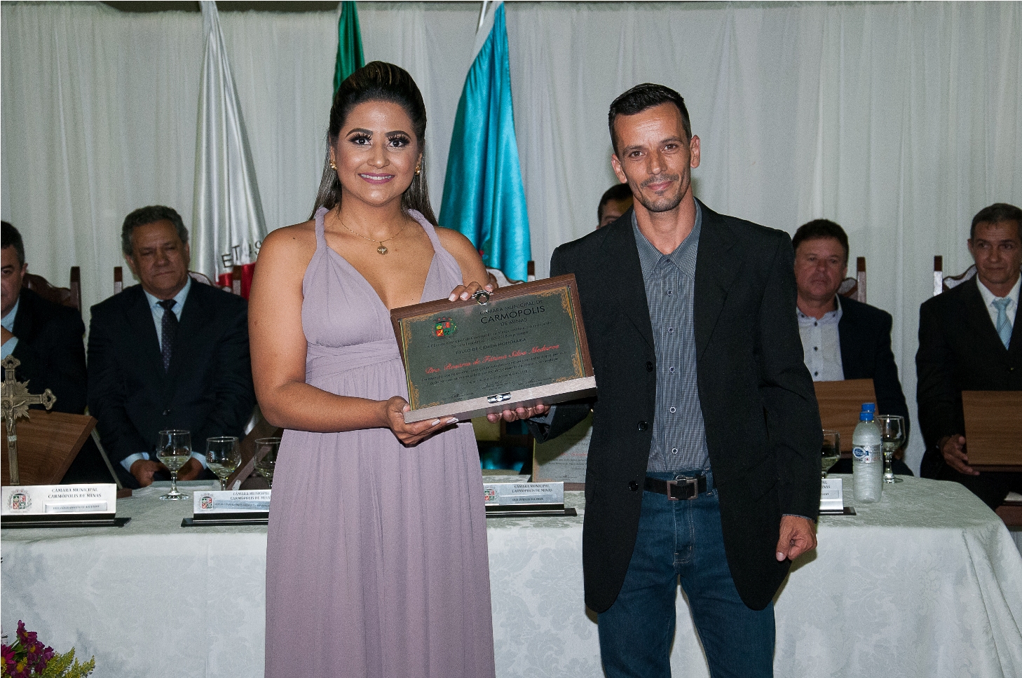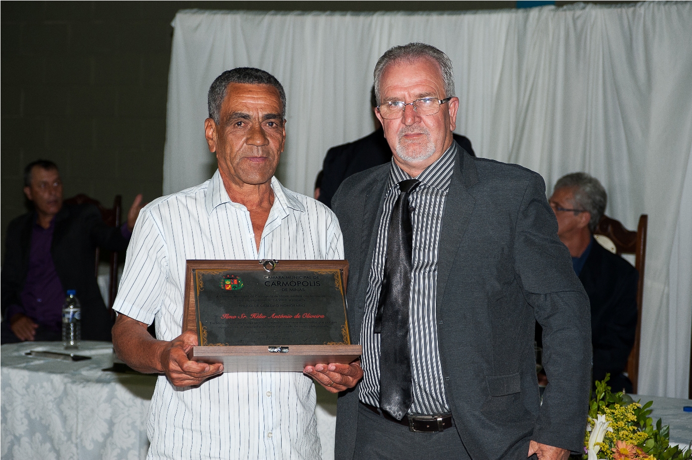 O PRESIDENTE DA CÂMARA MUNICIPAL DE CARMÓPOLIS DE MINAS, ESTADO DE MINAS GERAIS, CONCEDEU ATRAVÉS DE DECRETOS LEGISLATIVOS, TÍTULOS DE CIDADÃO HONORÁRIO A ALGUNS CIDADÃOS PELA PARTICIPAÇÃO NO DESENVOLVIMENTO E CRESCIMENTO DE CARMÓPOLIS DE MINAS.